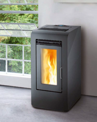 The Kalor Angela 10 is a medium-sized air stove which delivers heat to the room in which it is situated only. With a maximum heat output of ca. 9kW, the Angela is designed for small to medium spaces and it’s output can be reduced to as little as ca. 2.5kW when room temperature is satisfactory. Boasting a sleek and modern design but with with simple, clean lines, the Angela 10 comes from the popular Cayenne range of Kalor stoves. The advanced LCD display gives the user huge flexibilty of control but is simple and intuitive to use. A unique feature of the Angela 10 is that the flue exit can be at the top of the stove or at the rear, making it super-flexible in terms of it’s installation!
